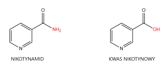 Obie formy witaminy B3 to dwa blisko spokrewnione ze sobą związki, różniące się obecnością tylko jednej grupy funkcyjnej.